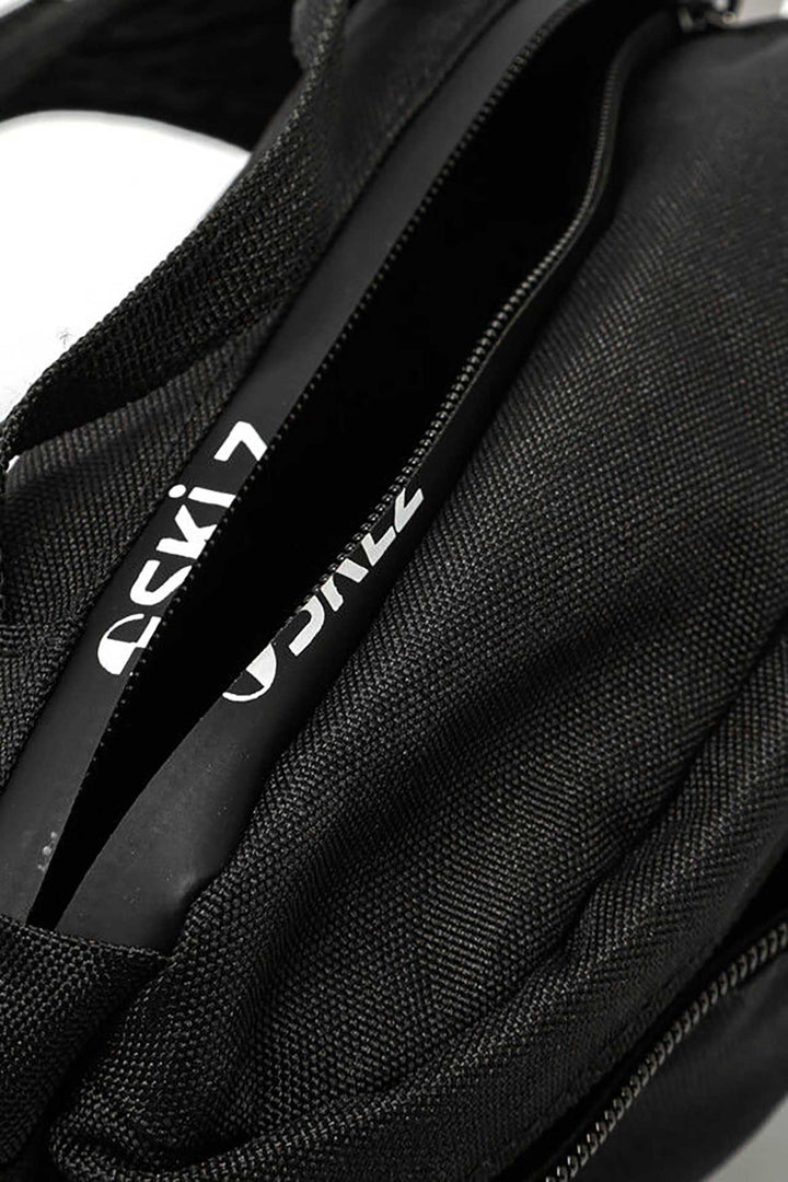 Sac banane multifonctionnel en noir, doté de deux compartiments principaux avec poches intérieures pour un rangement optimal.