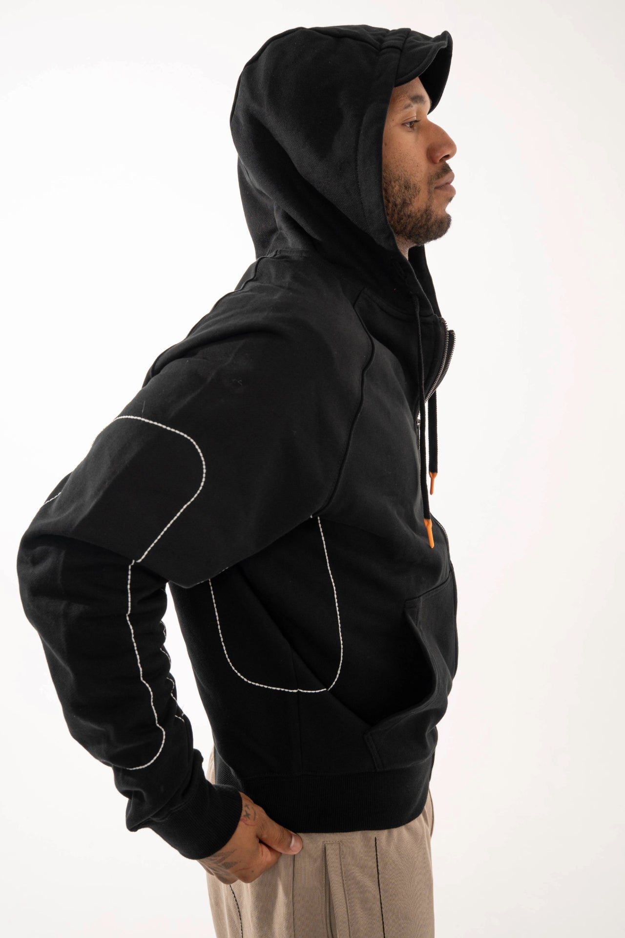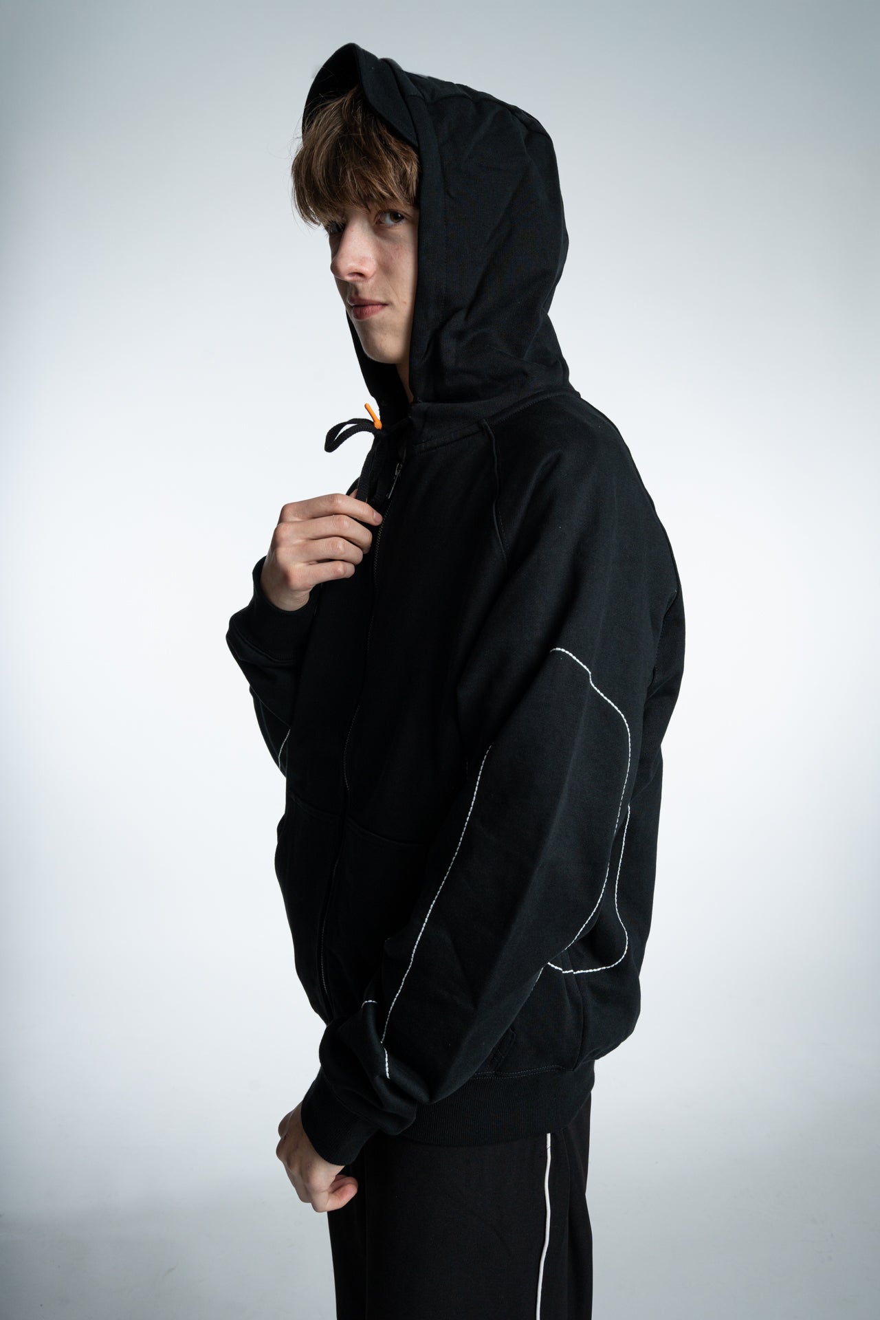 Hoodie zippé en coton épais et doux, conçu pour offrir à la fois confort et style dans toutes les situations. Sa capuche ajustable avec lacets noirs et sa fermeture éclair complète en font une pièce incontournable et polyvalente, parfaite pour toutes les saisons.