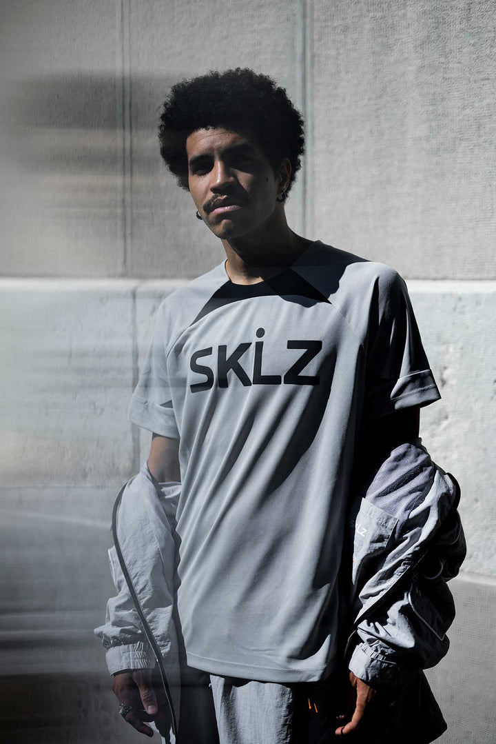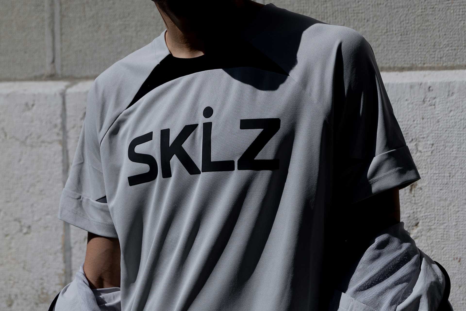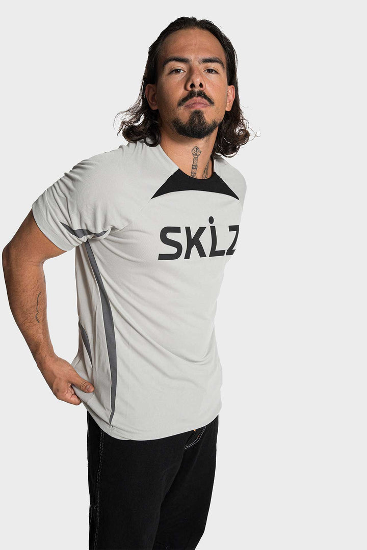 Maillot synthétique gris clair à coupe standard, avec logo SKLZ en 3D au dos.