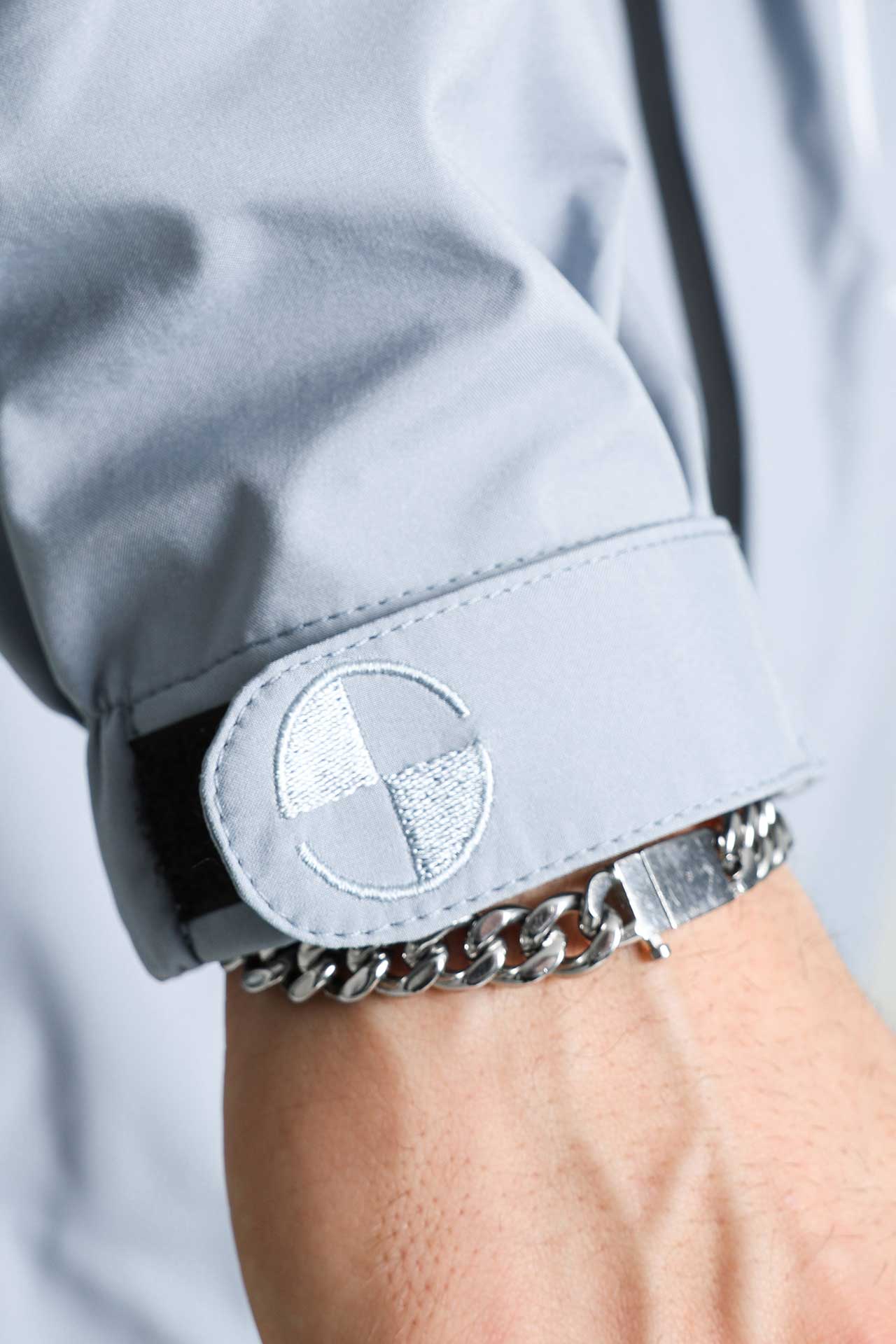 Fermeture éclair frontale, deux poches zippées sur le buste, une poche avec velcro sur la manche et une poche intérieure sécurisée par velcro.