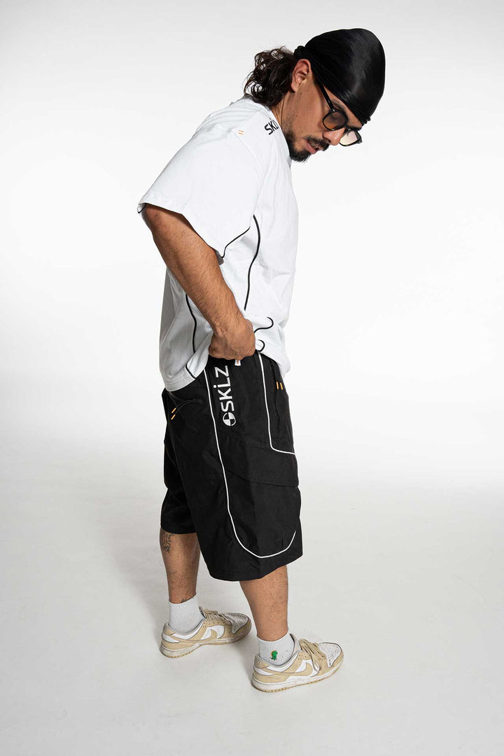 Short technique noir, équipé d'une taille élastique avec lacet de serrage pour un ajustement optimal.