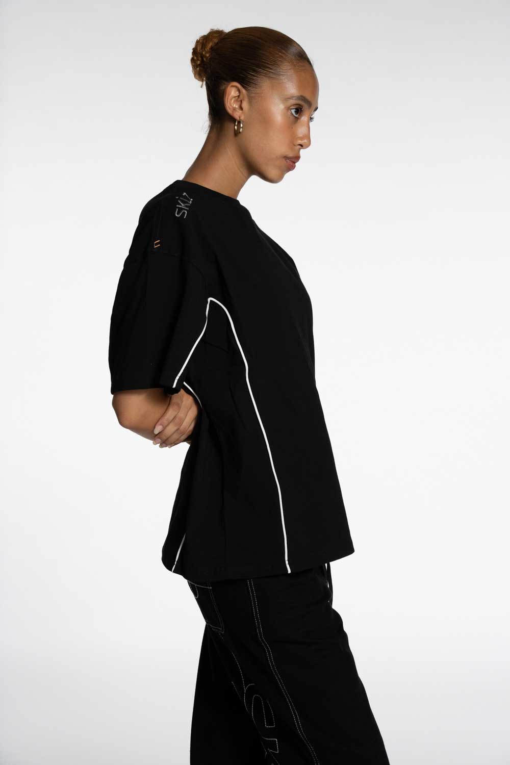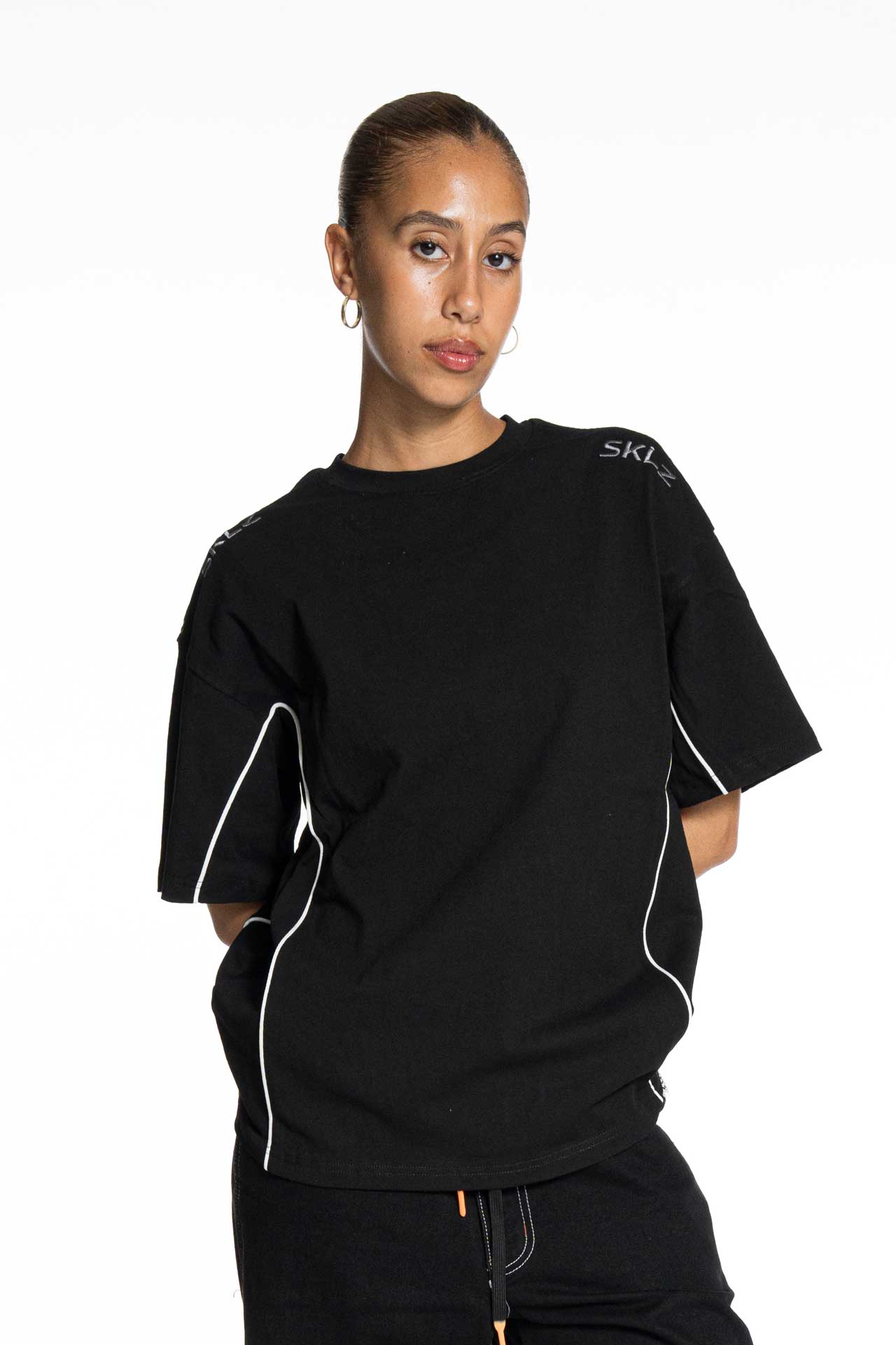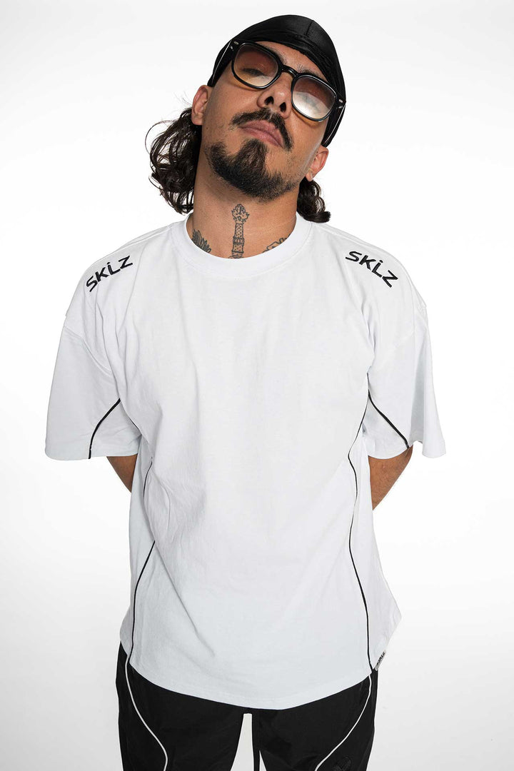 T-shirt crop en coton blanc, avec piping contrastant sur les côtés et logo SKLZ sur les épaules.