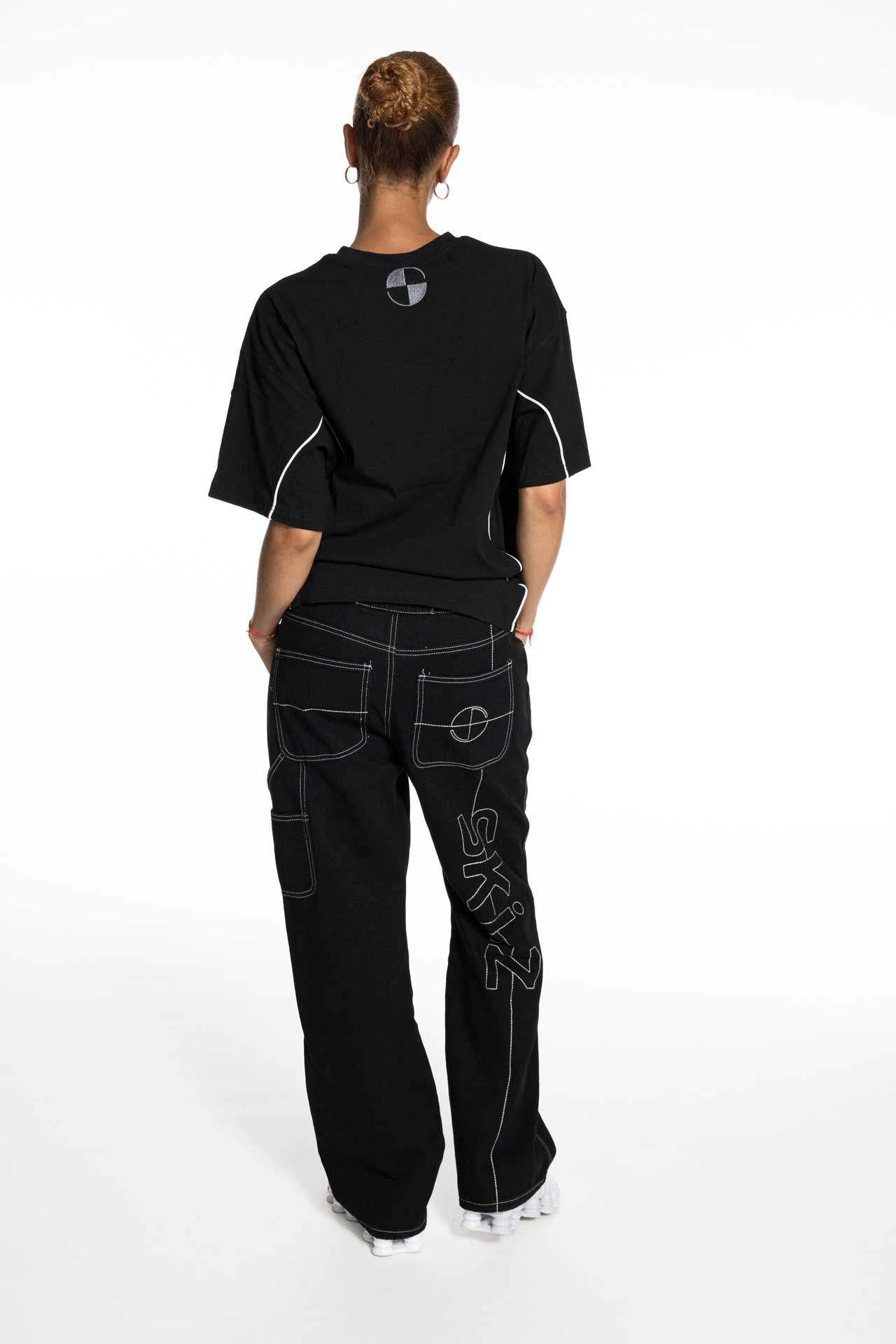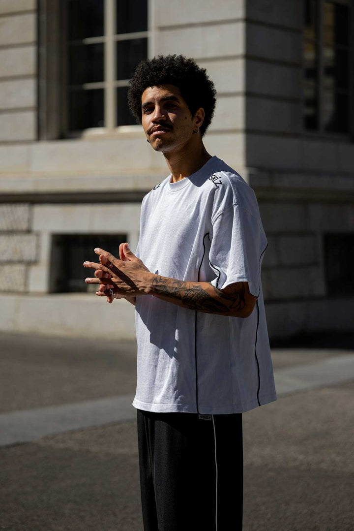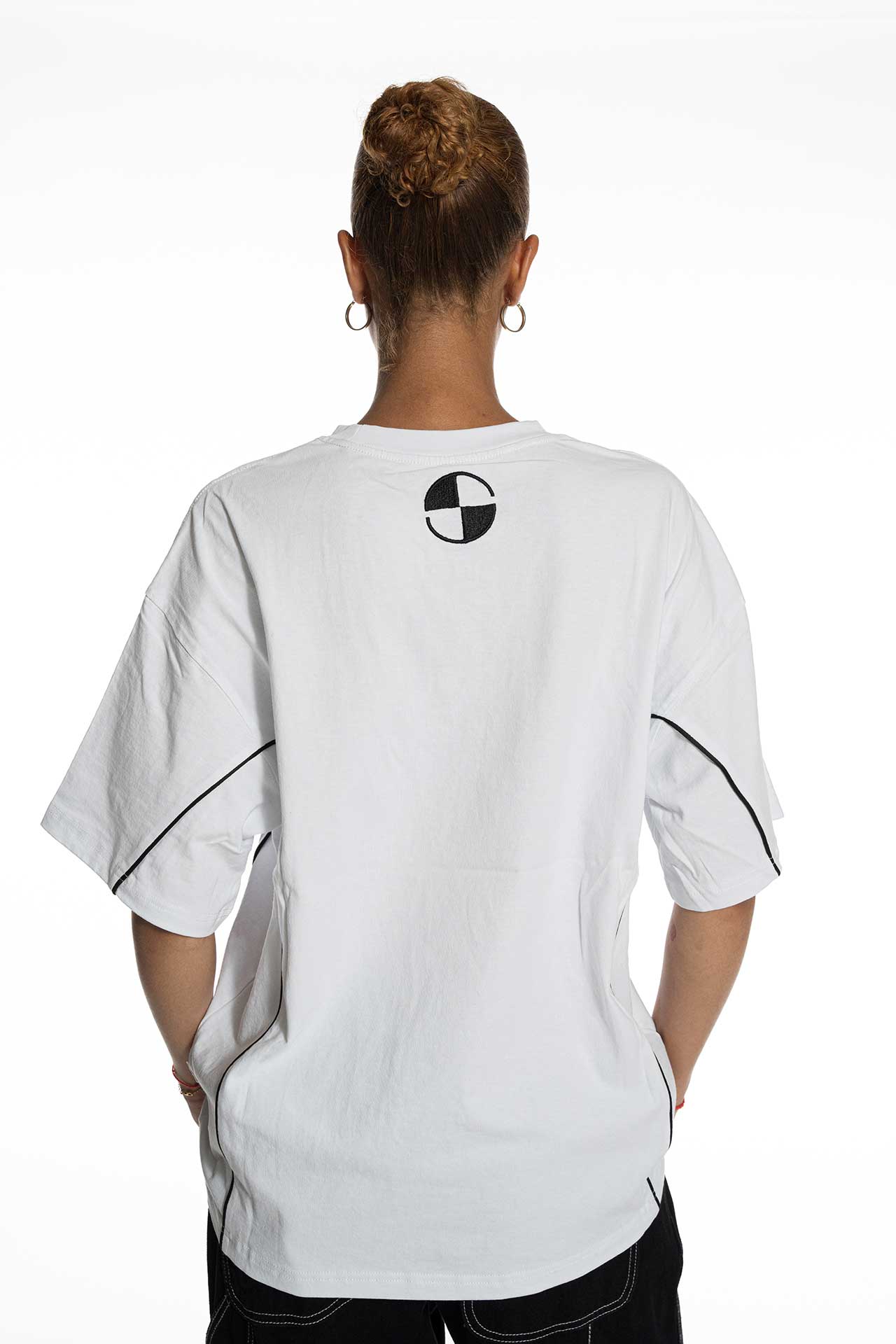 T-shirt crop en coton blanc, avec piping contrastant sur les côtés et logo SKLZ sur les épaules.