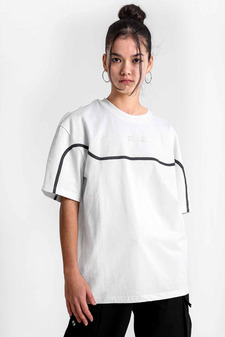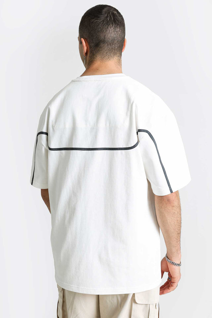 T-shirt ecru à col rond, fabriqué dans un tissu épais.