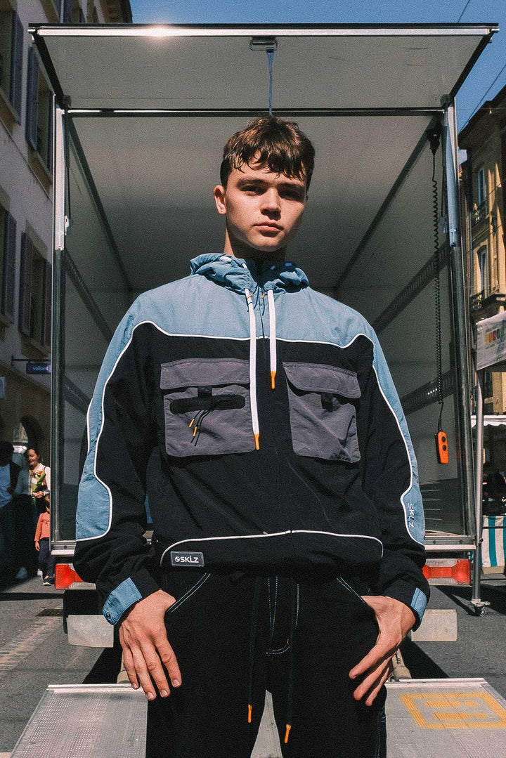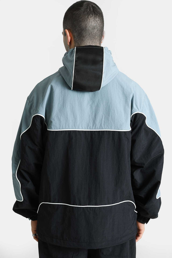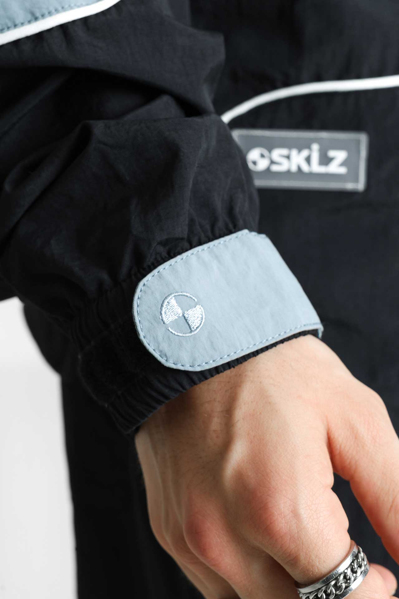 Veste de survêtement bicolore bleu et noir, body doublé de mesh pour un confort optimal.